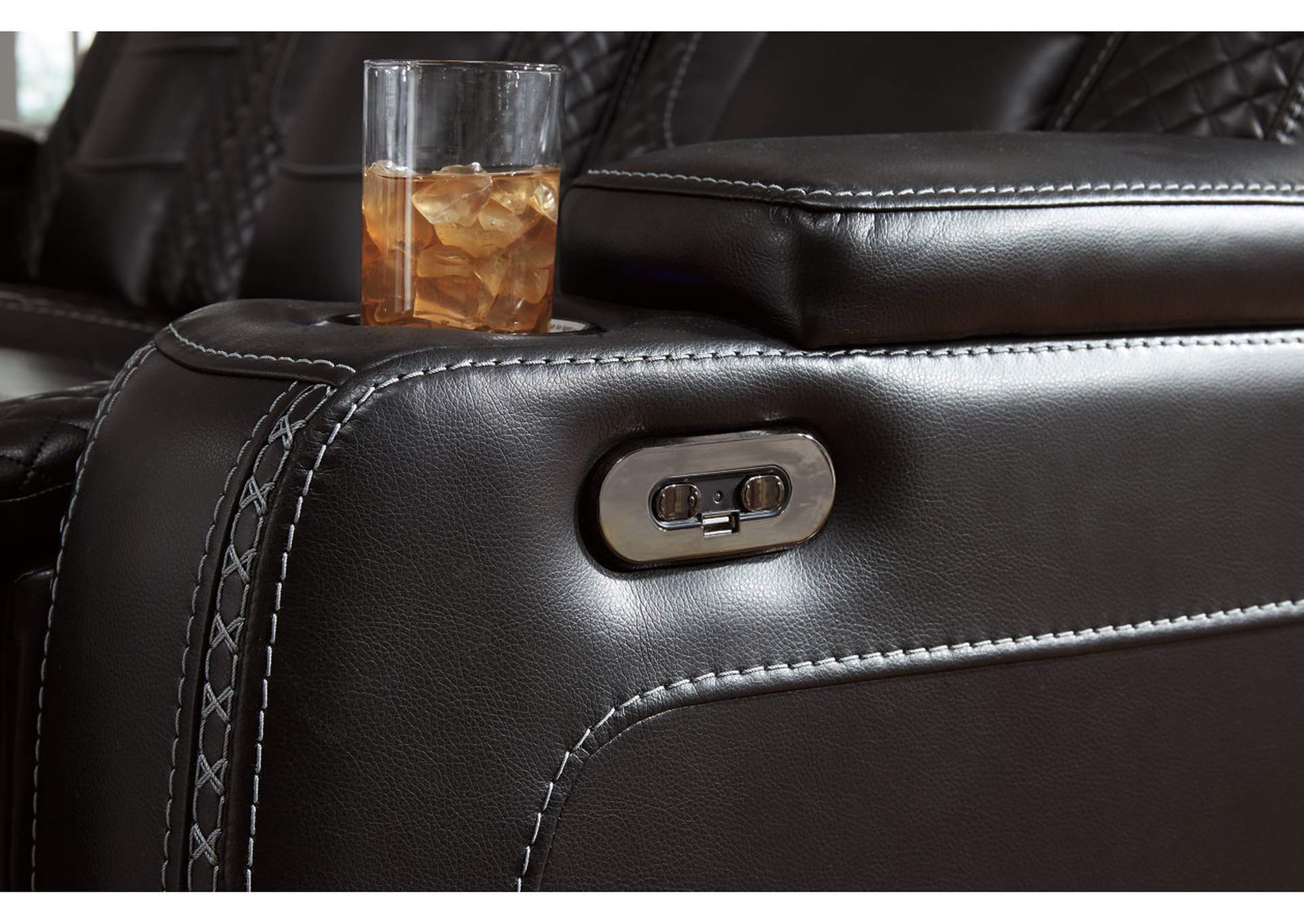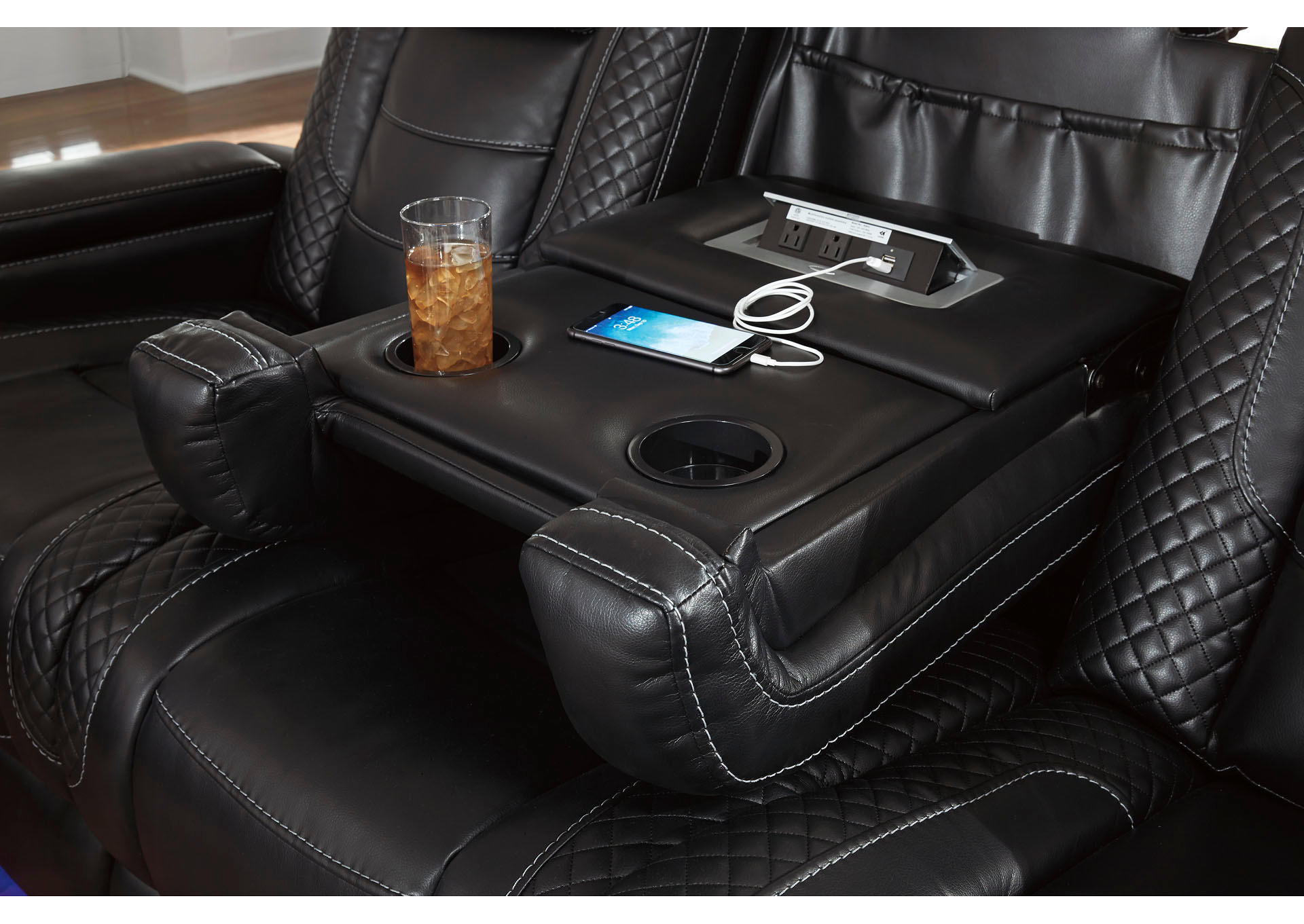 Link: Party Time Midnight Power Reclining Sofa & Loveseat w/Adjustable Headrest